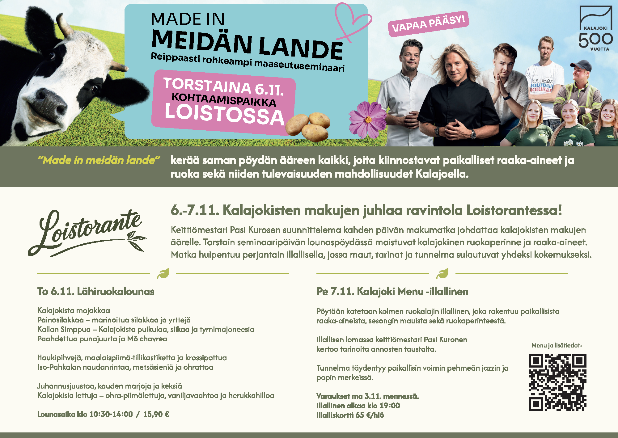 Kalajoen kirjamessuille Kohtaamispaikka Loistoon saapuu monipuolinen joukko suomalaisia kirjailijoita. Kalajoki 500 Juhlavuoden teeman mukaan kirjailijavieraat ovat joko kotoisin Kalajoelta, heillä on yhteys paikkakuntaan, tai jokin teos heidän tuotannossaan liittyy Kalajokeen.